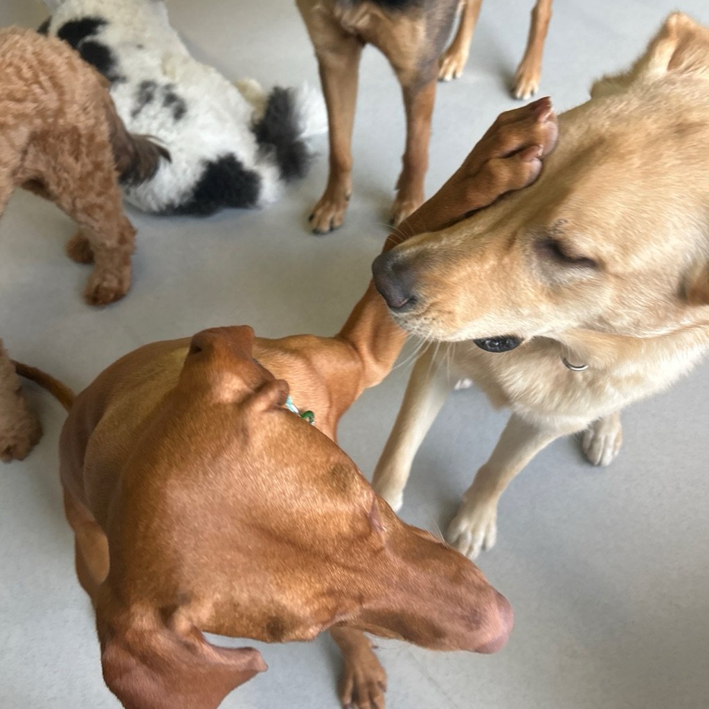 Pepper had an amazing first day!! She was so sweet and so gentle with the dogs and trainers๐ค๐ค When she first got in she was a bit nervous but she soon became our Velcro dog she even tripped us a few times. She also showed us her barking skills!!